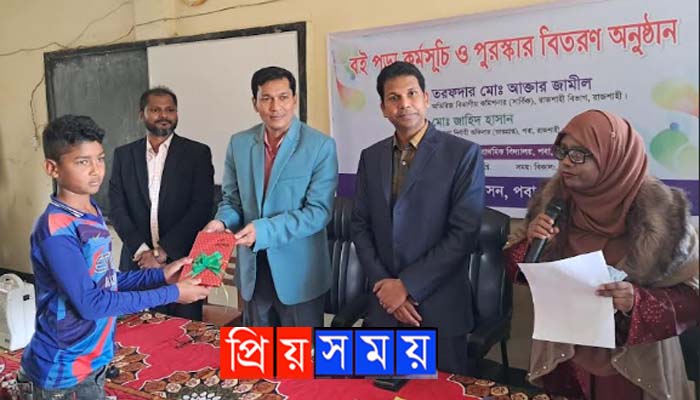 রাজশাহীর পবা উপজেলা প্রশাসনের আয়োজনে বই পড়া কর্মসূচির আওতায় চরাঞ্চলের শিক্ষার্থীরা পুরস্কার পেয়েছে। সোমবার (৬ জানুয়ারি) সকালে চর নবীনগর সরকারি প্রাথমিক বিদ্যালয়ে প্রধান অতিথি হিসেবে উপস্থিত থেকে বিজয়ী শিক্ষার্থীর হাতে পুরস্কার তুলে দেন অতিরিক্ত বিভাগীয় কমিশনার (সার্বিক) তরফদার মো. আক্তার জামীল।
