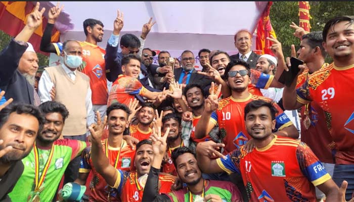 মঙ্গলবার (২১জানুয়ারি) বেলা ১১ টায় বিশ্ববিদ্যালয়ের ফুটবল মাঠে বায়োটেকনোলজি অ্যান্ড জেনেটিক ইঞ্জিনিয়ারিং বনাম ইসলামের ইতিহাস ও সংস্কৃতি বিভাগের ফাইনাল খেলাটি আয়োজিত হয়। সপ্তম বারের মতো গৌরব অর্জন করে বলে জানা যায় বিভাগটি।