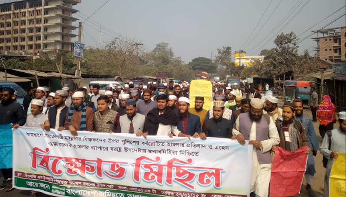 বিক্ষোভ মিছিল শেষে পুলিশের বর্বরোচিত হামলার তিব্র প্রতিবাদ ও নিন্দা জানিয়ে সমাপ্তি ঘোষণা করে।
