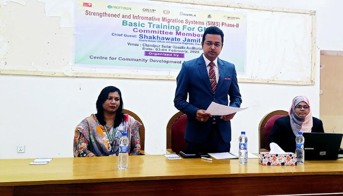 চাঁদপুরে সেন্টার ফর কমিউনিটি ডেভেলপমেন্ট এসিসটেন্স (সিসিডিএ) এর দুই দিনব্যাপী প্রশিক্ষণ কর্মশালায় প্রধান অতিথি’র বক্তব্য রাখেন চাঁদপুর সদর উপজেলা পরিষদের প্রশাসক ও উপজেলা নির্বাহী অফিসার সাখাওয়াত জামিল সৈকত।