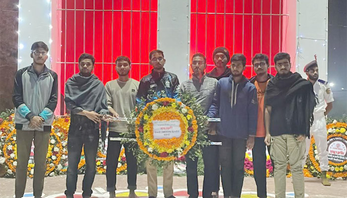 শুক্রবার (২১ ফেব্রুয়ারি) প্রথম প্রহরে বিশ্ববিদ্যালয়ের কেন্দ্রীয় শহীদ মিনারে ভাষা শহীদদের স্মরণ করে শ্রদ্ধা জানানো হয়েছে। এ সময় শ্রদ্ধাঞ্জলি নিবেদনে অংশ নেন সংগঠনটির সদস্য সচিব মোঃ সাকিব আসলাম, সদস্য শাহরিয়ার কবির রিমন, রবিউল আলম সহ অন্যান্য সদস্যবৃন্দ।