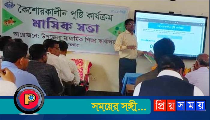 উপজেলা মাধ্যমিক শিক্ষা অফিসের আয়োজনে ইউনিসেফের কারিগরি সহায়তায় বিদ্যালয় ভিত্তিক কৈশোর কালীন পুষ্টি কার্যক্রম বাস্তবায়নের লক্ষে উপজেলার ৪৬টি প্রতিষ্ঠান প্রধানদের অংশ গ্রহণে পুষ্টি কার্যক্রম প্রকল্পের উপজেলা ফ্যাসিলিটেটর ফৌজিয়া ফারহানা ইকরা মাল্টিমিডিয়া ভিক্তিক বিদ্যালয়ের পুষ্টি কার্যক্রম পরিচালনার তথ্য, কৈশোরকালীন পুষ্টি প্রাপ্তির বিভিন্ন দিক, আয়রণ ফলিক এসিড খাওয়ার কার্যক্রম, গাইড শিক্ষক নির্বাচন, বিদ্যালয় ভিত্তিক কিশোর-কিশোরী কাব গঠন, কৃমি নাশক ঔষধ খাওয়ানো, শিক্ষার্থীদের তথ্য আপলোড সহ অন্যান্য বিষয় বর্ণনা করেন।