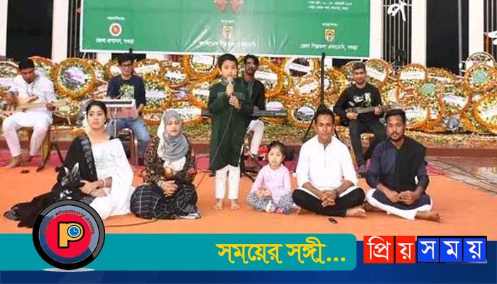 বগুড়া অমর একুশে বইমেলায় মনোজ্ঞ সাংস্কৃতিক অনুষ্ঠানে মুগ্ধ হয়ে উপভোগ করছেন মেলায় আগত দশনার্থীরা। সোমবার বিকেলে বগুড়া শহীদ খোকন পার্কে জাসাস আয়োজিত আয়োজিত অমর একুশে বই মেলায় গিয়ে এমন দৃশ্য চোখে পড়ে। জানা যায়, বগুড়া জেলা জাসাসের আয়োজনে এবারই প্রথম বই মেলা অনুষ্ঠিত হচ্ছে।