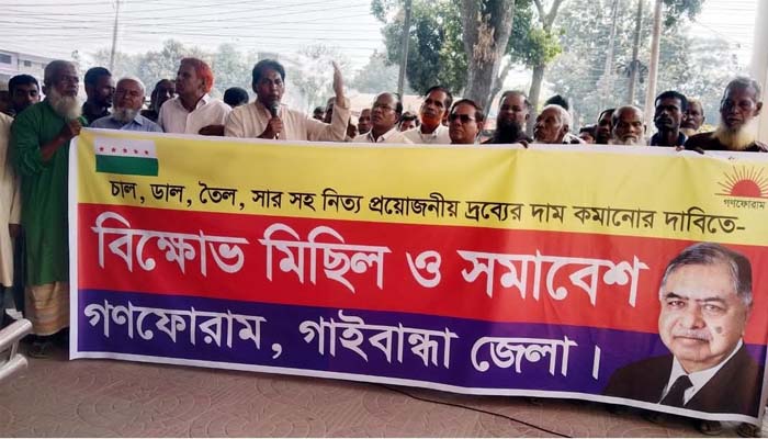 সম্প্রতি সারাদেশে খুন, ধর্ষণ, রাহাজানি, মারামারি বেড়ে গেছে। ফলে আইন শৃঙ্খলা পরিস্থিতির অবনতি হচ্ছে। এছাড়াও সিন্ডিকেটের দৌরাত্ম্যে চাল, ডাল, তেলসহ নিত্যপণ্য এবং কৃষি পণ্যের দাম বেড়েছে। এর প্রতিবাদে বুধবার গাইবান্ধায় বিক্ষোভ সমাবেশ করেছে গণফোরাম।