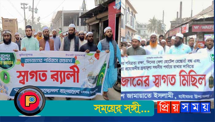 মাহে রমজানের পবিত্রতা রক্ষার্থে হাইমচরে স্বাগত মিছিল করেছে ইসলামী আন্দোলন বাংলাদেশ ও বাংলাদেশ জামাতে ইসলামী উপজেলা শাখার নেতৃবৃন্দ।
