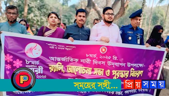 অদ্য শনিবার(৮ মার্চ) সকালে উপজেলা প্রশাসন ও মহিলা বিষয়ক অধিদপ্তর এর আয়োজনে এক র্যালী উপজেলার বিভিন্ন সড়ক প্রদক্ষিণ শেষে উপজেলা হলরুমে এক আলোচনা সভা অনুষ্ঠিত হয়।