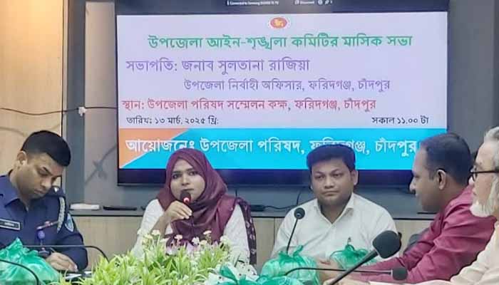 চাঁদপুরের ফরিদগঞ্জ উপজেলায় আইন-শৃঙ্খলা কমিটির মাসিক সভা অনুষ্ঠিত হয়েছে। বৃহস্পতিবার (১৩ মার্চ) সকাল ১১ টায় উপজেলা প্রশাসনের আয়োজনে উপজেলা পরিষদের হল রুমে এই সভা অনুষ্ঠিত হয়।