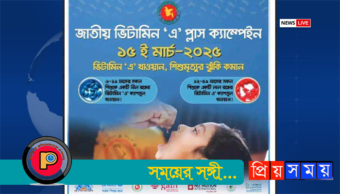 বাংলাদেশ থেকে অপুষ্টি জনিত অন্ধত্ব নির্মূল ও অপুষ্টি জনিত শিশু মৃত্যু প্রতিরোধ করার লক্ষে আগামী ১৫ মার্চ শনিবার জাতীয় ভিটামিন ‘এ’ প্লাস ক্যাম্পেইন পালন করা হবে। এ উপলক্ষে সাতক্ষীরার শ্যামনগর উপজেলায় প্রায় ৪০ হাজার শিশুকে ভিটামিন ‘এ’ ক্যাপসুল খাওয়ানো হবে।