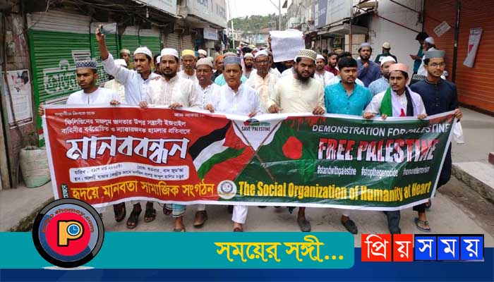 ফিলিস্তিনের নিরীহ মুসলমানদের উপর ইজরায়েলের বর্বরোচিত হামলার প্রতিবাদে এবং আল আকসা মসজিদ পুনরুদ্ধারের দাবিতে চাঁদপুরের হাইমচরে মানববন্ধন ও প্রতিবাদ সমাবেশ অনুষ্ঠিত হয়েছে।