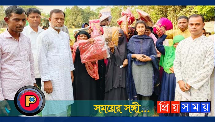 কুড়িমারা গ্রামের দরিদ্র বিধবা রাহেলা জানান কত বছর পড়ে সরকার থেকে একটি শাড়ী পেলাম আমি খুব আনন্দিত।
