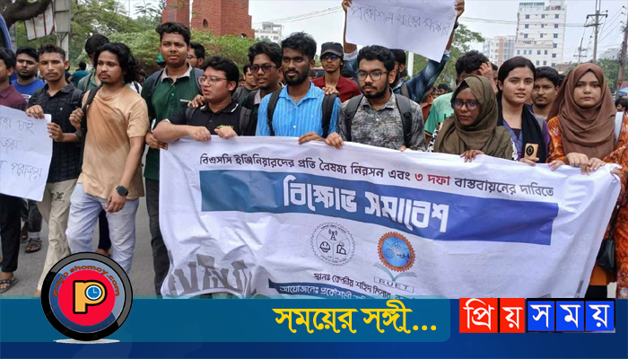 রুয়েট ছাত্র-ছাত্রীরা তিন দফা দাবিতে বিক্ষোভ করেছে । রাজশাহীর ভদ্রার মোড়ে দশম গ্রেড সবার জন্য উন্মুক্ত করা হোক। দশম গ্রেড, থেকে পরীক্ষার মাধ্যমে প্রমোশন নিয়ে নবম গ্রেডে আসতে হবে।