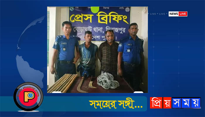 সূত্র জানায়, রবিবার গভীর রাতে ঘোড়াঘাট থানার একটি টহল গাড়ি হিলি স্থলবন্দর সড়কে দায়িত্ব পালন করছিল। এ সময় একদল ডাকাত টহল গাড়িটিকে যাত্রীবাহী মাইক্রোবাস মনে করে থামানোর চেষ্টা করে। পুলিশ সদস্যরা দ্রুত ব্যবস্থা নিয়ে ডাকাত দলের সদস্যদের ধরার জন্য অভিযান চালান। অভিযানে দুইজন ডাকাত ঘটনাস্থল থেকেই গ্রেপ্তার হয়। বাকিরা পালিয়ে যায়।