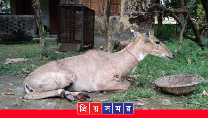 সরকার পাড়া গ্রামের জয়নুল হক জানান, আমার ভূট্টা ক্ষেতে নীলগাইটি লুকিয়ে ছিল। আহত হওয়ায় বাইরে বের হতে পারছিল না। রোববার সকালে ভূট্টা ক্ষেত থেকে বের হওয়ার চেষ্টা করলে মরিচ তোলা শ্রমিকরা দেখতে পেয়ে আমাকে খবর দেয়। সেখানে গিয়ে আমি বন বিভাগে খবর দেই। তারা এসে ভ্যানে করে নীলগাইটি নিয়ে যায়।