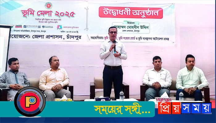 চাঁদপুরে র্যালি ও আলোচনা সভার মধ্য দিয়ে তিন দিনব্যাপী (২৫-২৭ মে) “ভূমি মেলা-২০২৫ উদ্বোধন করা হয়েছে। রোববার সকাল ১০টায় উপজেলা পরিষদ চত্বর থেকে একটি র্যালি বের হয়।র্যালি শেষে উপজেলা পরিষদ সেমিনার কক্ষে ভূমি সেবা মেলার উদ্বোধন করেন জেলা প্রশাসক মোহাম্মদ মোহসীন উদ্দিন।