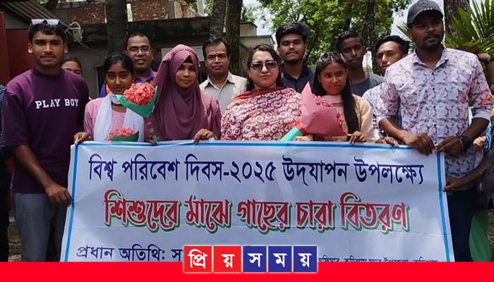 বিশ্ব পরিবেশ দিবস-২০২৫ উদযাপন উপলক্ষে কুড়িগ্রাম সদর উপজেলায় শিশুদের মাঝে আম গাছের চারা বিতরণ অনুষ্ঠান অনুষ্ঠিত হয়েছে। শিশু ও যুব ফোরাম, কুড়িগ্রাম সদর এর আয়োজনে মঙ্গলবার (৩ জুন) মাদার তেরেসা শিশু বিদ্যালয় মাঠে এসব গাছের চারা বিতরণ কার্যক্রম অনুষ্ঠিত হয়।