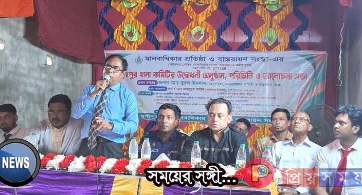 গরীব, অসহায় ও নির্যাতিত মানুষের অধিকার আদায়ে সর্বাত্মক সাহায্য করার লক্ষ্যে নেত্রকোনার দুর্গাপুরে ‘মানবাধিকার প্রতিষ্ঠা ও বাস্তবায়ন সংস্থার’ উপজেলা কমিটির পরিচিতি ও আলোচনা সভা অনুষ্ঠিত হয়েছে। বৃহস্পতিবার (৩ জুলাই) বিকেলে কাপাসাটিয়া বাজারে সংস্থার কার্যালয়ে এ সভা অনুষ্ঠিত হয়।
