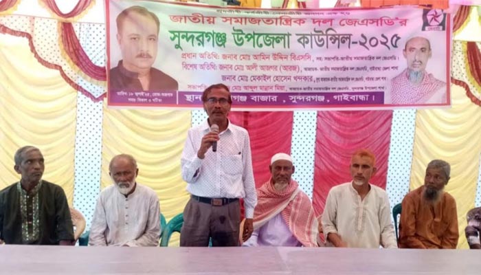 গাইবান্ধার সুন্দরগঞ্জে জাতীয় সমাজতান্ত্রিক দল (জেএসডি)’র উপজেলা কাউন্সিল অনুষ্ঠিত। শুক্রবার (১৮ জুলাই) বিকালে এ লক্ষ্যে উপজেলার শোভাগঞ্জ বাজারে অনুষ্ঠিত আলোচনা সভায় প্রধান অতিথির বক্তব্য রাখেন- জেএসডি’র কেন্দ্রীয় কমিটির সহ-সভাপতি আমিন উদ্দিন বিএসসি। বিশেষ অতিথি ছিলেন- জেলা জেএসডি’র আহ্বায়ক আলী আজগর (আরজ), যুগ্ন-আহ্বায়ক মেকাইল হোসেন খন্দকার।