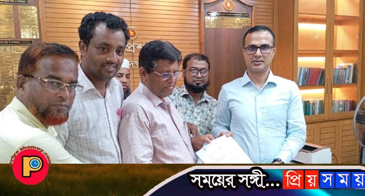 সভাপতি মো: বিলাল হোসেন এবং সাধারণ সম্পাদক মো: মোজাম্মেল হোসেন ঢালীর নেতৃত্বে শিক্ষক নেতৃবৃন্দ এই স্মারকলিপি প্রদান করেন।