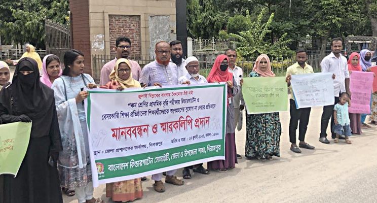 দিনাজপুরে প্রাথমিক বৃত্তি পরীক্ষায় কিন্ডার গার্ডেন ও বেসরকারি শিক্ষা প্রতিষ্ঠানের শিক্ষার্থীদের অংশগ্রহণের সুযোগ না দেওয়ার প্রতিবাদে মানববন্ধন ও প্রধান উপদেষ্টা বরাবর স্মারকলিপি দিয়েছে বাংলাদেশ কিন্ডার গার্ডেন সোসাইটি।
