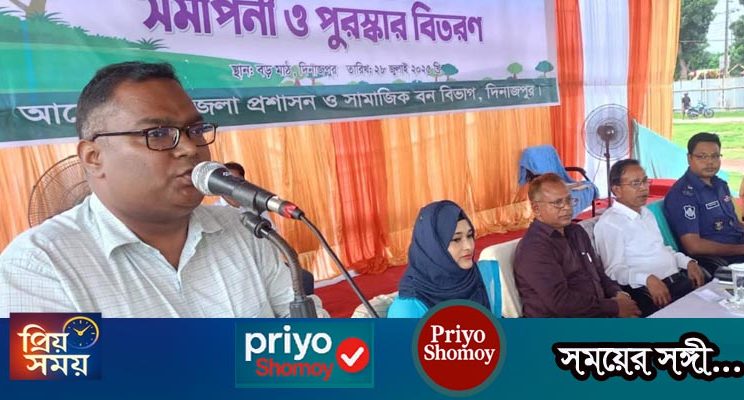 “পরিকল্পিত বনায়ন করি–সবুজ বাংলাদেশ গড়ি” এই প্রতিপাদ্যকে সামনে রেখে দিনাজপুরে জেলা প্রশাসন ও সামাজিক বন বিভাগের যৌথ আয়োজনে দশ দিনব্যাপী বৃক্ষরোপণ অভিযান ও বৃক্ষমেলা-২০২৫ এর সমাপনী ও পুরস্কার বিতরণ অনুষ্ঠান অনুষ্ঠিত হয়েছে।