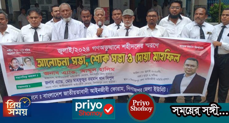 বৃহস্পতিবার (৩১ জুলাই ২০২৫) বিকেল ৩টায় দিনাজপুর জেলা আইনজীবী সমিতি ভবনের সামনে এ কর্মসূচি পালন করা হয়।