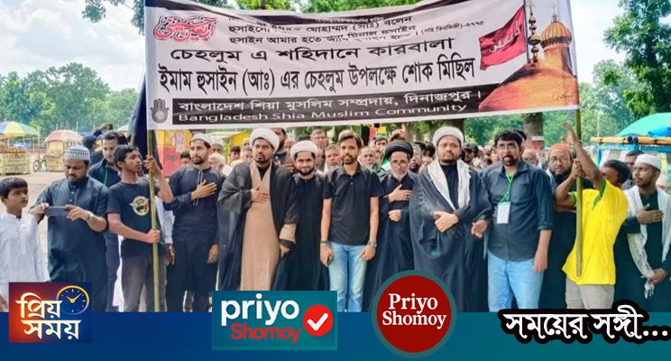 দিনাজপুরে ইতিহাসে প্রথমবারের মতো শিয়া মুসলিম সম্প্রদায়ের উদ্যোগে তাজিয়া মিছিল অনুষ্ঠিত হয়েছে। বৃহস্পতিবার (৩১ জুলাই ২০২৫) বিকেল ৩টায় দিনাজপুর শহরের গোর-এ-শহীদ বড় ময়দান থেকে এই মিছিল শুরু হয়ে শহরের বিভিন্ন সড়ক ঘুরে পুনরায় একই স্থানে এসে শেষ হয়।