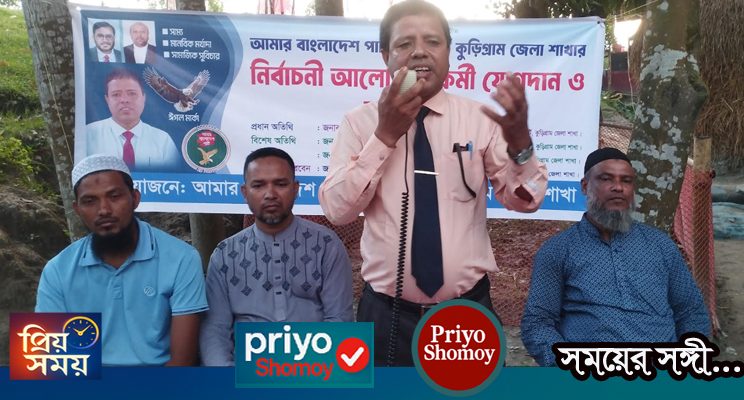সাম্য, মানবিক মর্যাদা, সামাজিক সুবিচার এই প্রতিপাদ্যে আমার বাংলাদেশ পার্টি (এবি পার্টি) কুড়িগ্রাম জেলা শাখার নির্বাচনী আলোচনা সভা, কর্মী যোগদান ও ভোগডাঙ্গা ইউনিয়নের কমিটি গঠন করা হয়েছে।