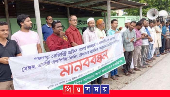 পঞ্চগড় শহরের রেজিস্ট্রি অফিস সংলগ্ন জনবহুল ও ঘনবসতিপূর্ণ এলাকায় বেঙ্গল এলপিজি এনার্জি ফিলিং স্টেশনের প্রাথমিক অনুমোদন বাতিলের দাবিতে শহীদ মিনারের সামনে পঞ্চগড় -ঢাকা মহাসড়কের পাশে বাংলাদেশ পরিবেশ আন্দোলন বাপা পঞ্চগড় জেলা আঞ্চলিক শাখার উদ্যোগে মানববন্ধন কর্মসূচি পালন করা হয়েছে।