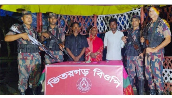বিজিবি আরও জানায়, সীমান্তের মেইন পিলার ৭৪৪ এর ৪ নম্বর সাব পিলার এলাকায় বাংলাদেশের অভ্যন্তরে পোকলাভিটা এলাকায় অভিযান চালানো হয়। তারা অবৈধভাবে ভারতে প্রবেশ চেষ্টা করছিলেন। এসময় তিনজনকে আটক করা হয়। তাদের কাছ থেকে নগদ ৯ হাজার ৭৬০ টাকা, তিনটি মোবাইল ফোন জব্দ করা হয়। অবৈধভাবে ভারতে প্রবেশের জন্য তারা দালাল চক্রের সঙ্গে ৪৯ হাজার টাকা চুক্তি করে বলে জানায় বিজিবি।