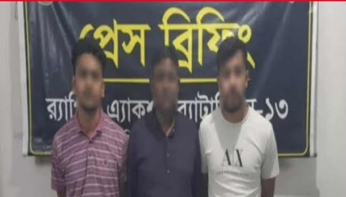 সম্প্রতি পঞ্চগড় শহরের সিনেমা হল মার্কেটে জাবেদ উমর জয় হত্যাকাণ্ডের মামলায় এজাহারনামীয় তিন আসামিকে গ্রেফতার করেছে র্যাপিড অ্যাকশন ব্যাটালিয়ন (র্যাব-১৩)। বৃহস্পতিবার (২১ আগস্ট) রাত সাড়ে ৯টার দিকে র্যাব-১৩ এর সিপিসি-২ নীলফামারী ও সিপিসি-১ দিনাজপুর ক্যাম্পের যৌথ অভিযানে দিনাজপুর জেলার কোতোয়ালী থানার বড় মাঠ এলাকা থেকে নূর রাব্বী (২৬), আবু তালেব (২৫) ও কামাল হোসেন (৪০) নামের এজাহারনামীয় আসামিদের গ্রেফতার করা হয়।
