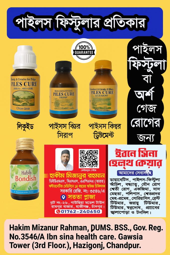 আরো পড়ুন : অর্শ গেজ পাইলস বা ফিস্টুলা রোগের চিকিৎসা