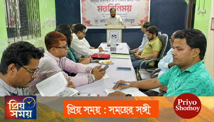 ক্যাপশন : চাঁদপুরে লোকসংস্কৃতি চর্চা ও গবেষণায় করণীয় বিষয়ে মতবিনিময় সভায় বক্তব্য রাখেন চাঁদপুর সরকারি কলেজের বাংলা বিভাগের সহযোগী অধ্যাপক শরীফ মাহমুদ চিশতী।