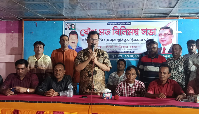 তালায় জাতীয়তাবাদী যুবদল স্বেচ্ছাসেবক দল ছাত্রদল ছাত্রদলের উদ্যোগে যৌথ মত বিনিময় সভার আয়োজন করা হয়। প্রধান অতিথি হিসেবে বক্তব্য রাখেন কেন্দ্রীয় বিএনপি’র প্রকাশনা বিষয়ক সম্পাদক ও সভ্যসাচী রাজনীতির কাব্য পুরুষ সাবেক এমপি হাবিবুল ইসলাম হাবিব। তিনি বলেন বিএনপিতে কোন চাঁদাবাজ দখলবাজের স্থান হবে না। বিএনপি জনগণের দল, জনগণের সাথে কোনো অন্যায় করলে শক্ত হাতে তাকে সবাই মিলে প্রতিহত করা হবে। ত্যাগীদের দলে মূল্যায়ন করতে হবে। জনগণের প্রত্যাশা পূরণে সকলকে ঐক্যবদ্ধ হয়ে কাজ করতে হবে।