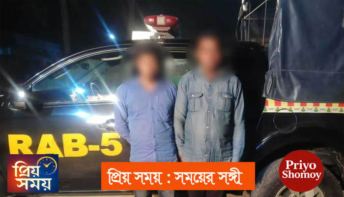 র্যাব-৫, সিপিএসসি, রাজশাহীর একটি আভিযানিক দল গোপন সংবাদের ভিত্তিতে সোমবার (১০ নভেম্বর ২০২৫) বিকেল ৫টার দিকে তানোর থানাধীন হাটদহ এলাকায় অভিযান পরিচালনা করে। অভিযানে মাদক ব্যবসায়ী রবিউল ইসলাম ও রুবেল আলীকে গ্রেপ্তার করা হয়েছে। গ্রেপ্তার উভয়েই তানোর থানার বাসিন্দা।