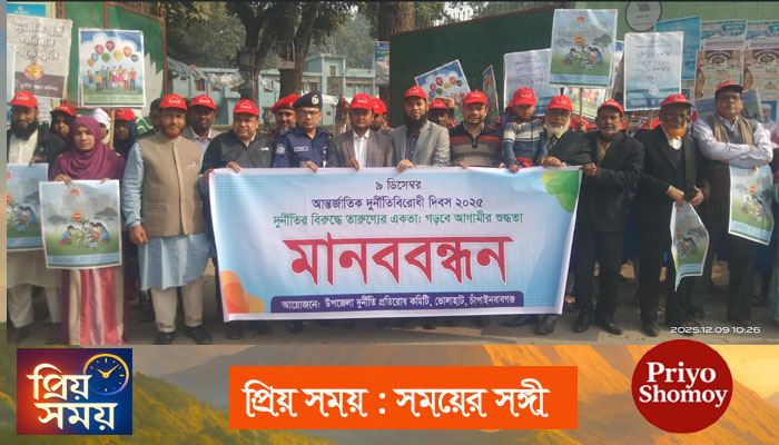 চাঁপাইনবাবগঞ্জের ভোলাহাটে আন্তর্জাতিক দুর্নীতি বিরোধী দিবস ২০২৫ পালনে বর্ণাঢ্য র্যালী, মানববন্ধন ও আলোচনা সভা মঙ্গলবার (৯ নভেম্বর ২০২৫) সকাল ৯টায় যথাযথভাবে পালিত হয়েছে।