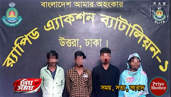 বগুড়ার শেরপুরে চাঞ্চল্যকর মতিয়ার রহমান (৬৯) হত্যা মামলার চার পলাতক আসামিকে গ্রেফতার করেছে র্যাব। র্যাব-১২, সিপিএসসি বগুড়া এবং সিপিসি-১, র্যাব-১, উত্তরা ঢাকার যৌথ অভিযানে ঢাকা জেলার আশুলিয়া থানাধীন জিরাবো ঘোষবাগ পূর্বপাড়া এলাকা থেকে বৃহস্পতিবার (১৬ এপ্রিল) রাতে তাদের গ্রেফতার করা হয়। গ্রেফতারকৃত আসামিরা হলেন – মোঃ শাহিন (৪৮), মোঃ জাফর আলী (২৫), মোঃ মিল্লাত (২২) এবং মোছাঃ জাহেদা বেগম (৩৫)।