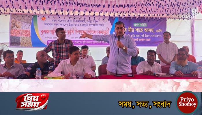 এসময় প্রতিমন্ত্রীর স্বেচ্ছাধীন তহবিল হতে ১৬৭ জন কৃষকের হাতে নগদ ৪৫০০ টাকাসহ কৃষি উপকরণ ও একটি করে বৃক্ষ তুলে দেন প্রতিমন্ত্রী। রবিবার (১৯ এপ্রিল ২০২৬) দুপুর ১২টায় শিবগঞ্জ মসলা গবেষণা কেন্দ্রে বাংলাদেশ মসলা গবেষণা ইনস্টিটিউট (বিআরআই) কর্তৃক আয়োজিত এ কর্মসূচিতে প্রধান অতিথি হিসেবে বক্তব্য রাখেন স্থানীয় সরকার, পল্লী উন্নয়ন ও সমবায় প্রতিমন্ত্রী মীর শাহে আলম এমপি।