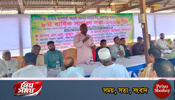 ১৮ এপ্রিল ২০২৬ (শনিবার) সকালে জয়পাড়া বাজারের তোহা মার্কেটে ব্যবসায়ী বহুমুখী সমবায় সমিতির ৮ম বার্ষিক সাধারণ সভা অনুষ্ঠিত হয়েছে।