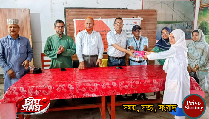 আলোচনা শেষে ওয়ার্ল্ড ভিশন বাংলাদেশ এর পক্ষ থেকে ১০০ জন কিশোরীর মাঝে স্যানিটারি ন্যাপকিন বিতরন করা হয়।