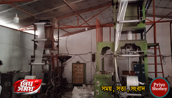 মঙ্গলবার (২১ এপ্রিল) বিকেলে গোপন সংবাদের ভিত্তিতে শহরের বাসস্ট্যান্ড সংলগ্ন স্বর্ণখোলা রোডে হরিজন সম্প্রদায়ের আবাসনের পাশে এ অভিযান পরিচালনা করা হয়। জানা যায়, টিনশেড গুদামটি ভাড়া নিয়ে সেখানে দীর্ঘদিন ধরে অবৈধভাবে পলিথিন উৎপাদন করে চাঁদপুরসহ বিভিন্ন জেলায় সরবরাহ করা হচ্ছিল।