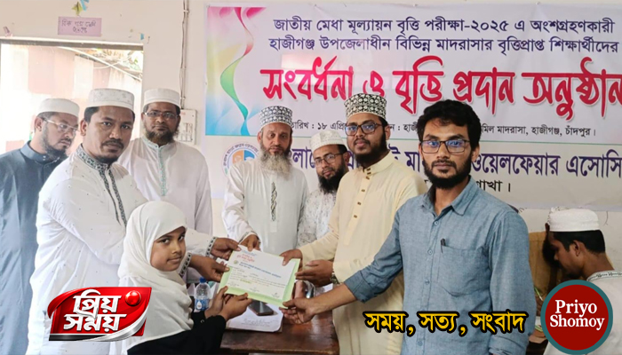 চাঁদপুরের হাজীগঞ্জ আহমাদিয়া কামিল মাদ্রাসা কেন্দ্রে বাংলাদেশ প্রাইভেট মাদ্রাসা ওয়েলফেয়ার এসোসিয়েশনের জাতীয় মেধা মূল্যায়ন বৃত্তি পরীক্ষা সনদ ও অর্থ বিতরণ শনিবার (১৮ এপ্রিল) সকাল ১০ টায় মাদরাসা মিলনায়তনে অনুষ্ঠিত হয়েছে।