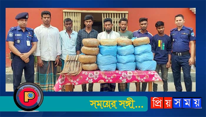 বাংগরা বাজার থানায় অস্ত্র ও বিপুল পরিমাণ গাঁজাসহ গ্রেপ্তার ৭