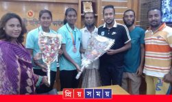 কৃর্ত্তি খেলোয়াড় শ্যামনগরের রেহানা ও ষষ্ঠীকে সংবর্ধনা দিলেন ইউএনও মোছাঃ রনী খাতুন