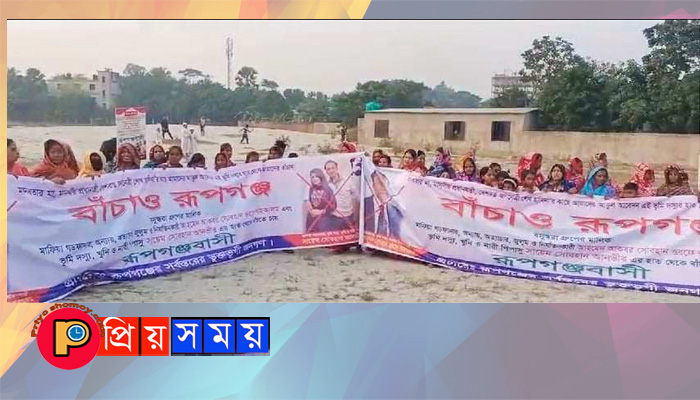 রূপগঞ্জে ভুমিদস্যুদের বিরুদ্ধে ক্ষতিগ্রস্তদের মানববন্ধন