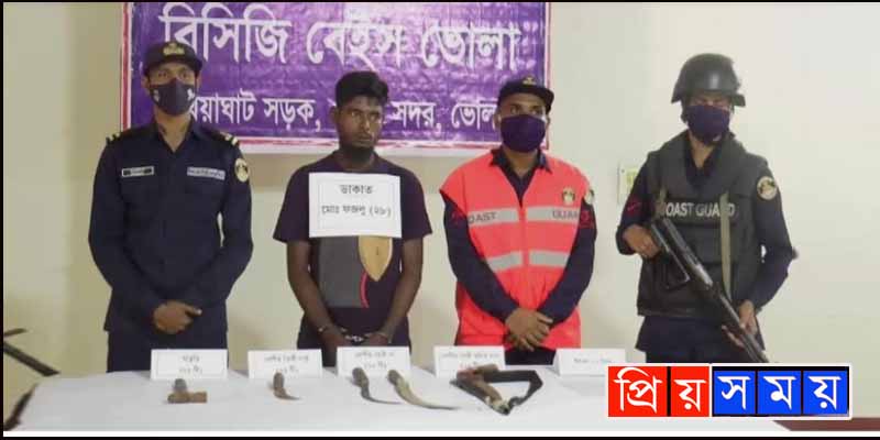 ভোলার দৌলতখানে অস্ত্র-ইয়াবাসহ দস্যুকে আটক করেছে কোস্টগার্ড