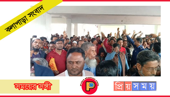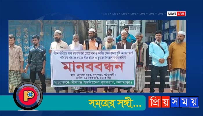 পটুয়াখালীর কলাপাড়ায় খাল লীজ দেয়ায় কৃষিকাজ বন্ধের শঙ্কায় মানববন্ধন