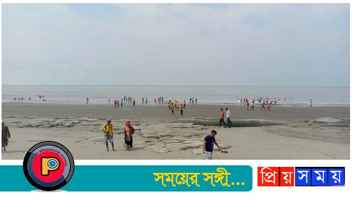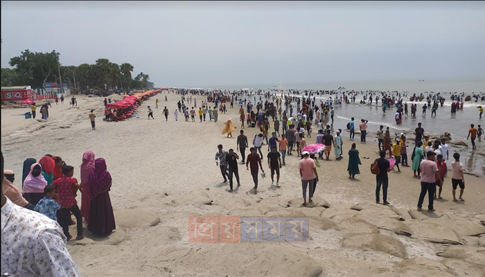 কুয়াকাটা সমুদ্র সৈকতে পর্যটকের ভিড়, ব্যবসায়ীদের মুখে হাসি