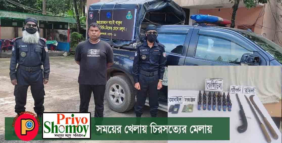 র্যাবের অভিযানে চৌদ্দগ্রাম থেকে অস্ত্র ও ফেন্সিডিলসহ আটক ১