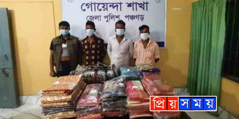 পঞ্চগড় ১০০ পিচ ভারতীয় শাড়ীসহ ৩ চোরাচালানকারী গ্রেফতার
