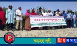 বেড়ীবাঁধের ভাঙ্গনে দাঁড়িয়ে শ্যামনগরে পানি উন্নয়ন বোর্ডের অনিয়ম দুনীতির বিরুদ্ধে মানববন্ধন